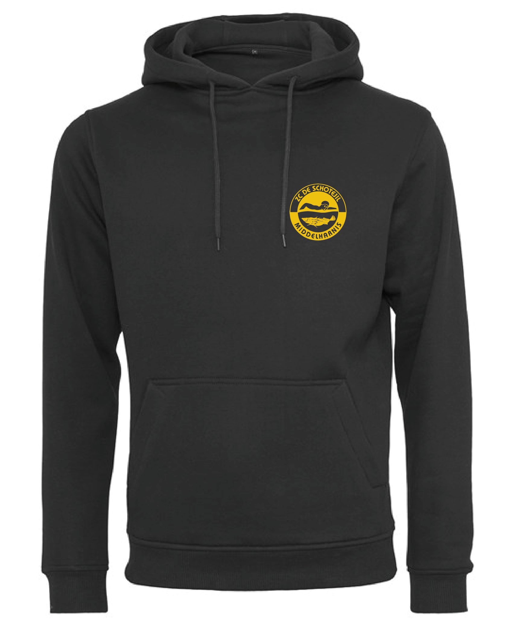 Mooie zwarte hooded sweater van katoen / polyester. Incl. opdruk klein en groot logo Schotejil.