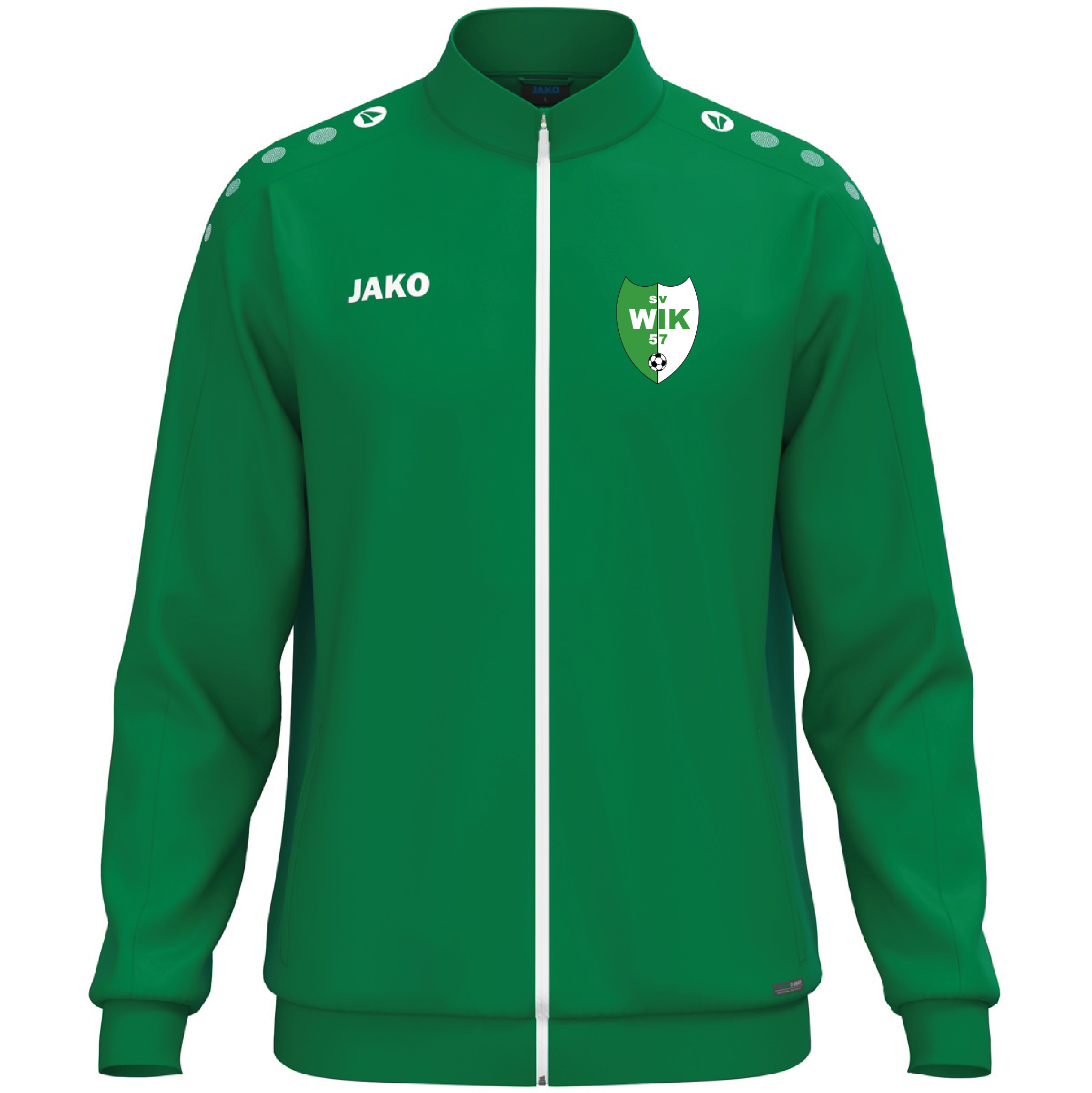 Polyester trainingsvest met elastische boord en zakken met rits. Incl. clublogo.